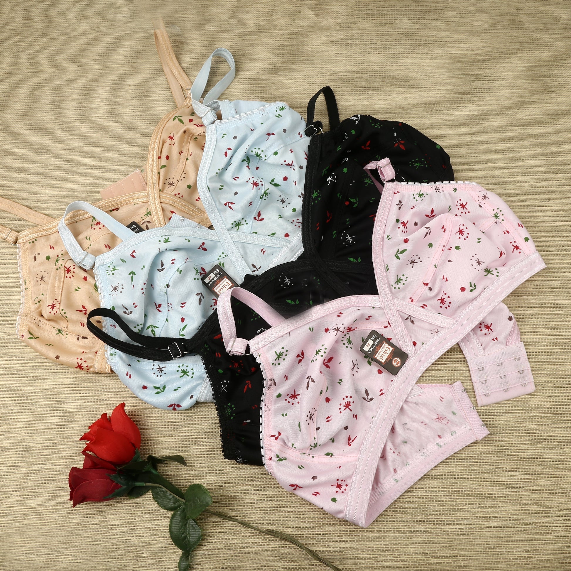 This Pack of 4 comfortable Fabric Soft Printed Jersey Bras is perfect for women looking for comfort and style in Pakistan.